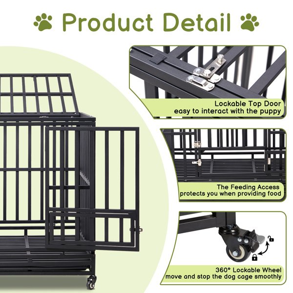 42 Inch Heavy Duty Dog Crate, 3-Door Dog Kennel for Medium to Large Dogs with Lockable Wheels and Removable Tray for Indoor & Outdoor 42 Inch Heavy Duty Dog Crate, 3-Door Dog Kennel for Medium to Large Dogs with Lockable Wheels and Removable Tray for Indoor & Outdoor 42 Inch Heavy Duty Dog Crate, 3-Door Dog Kennel for Medium to Large Dogs with Lockable Wheels and Removable Tray for Indoor & Outdoor