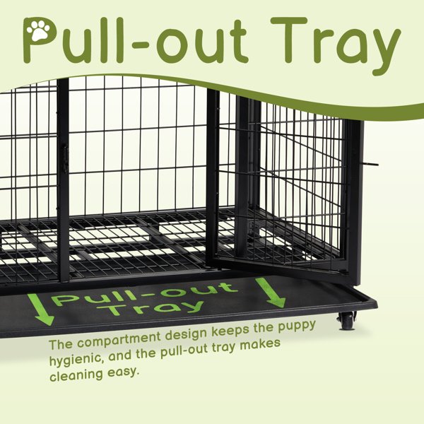 Provide a safe, secure, and comfortable space for your dog with our Heavy Duty 36 in Dog Crate. Designed for both indoor and outdoor use, this dog kennel features a robust construction and convenient design that make it perfect for training and daily use. With double doors, a removable plastic tray, and lockable wheels, this dog crate ensures your pet's comfort and your ease of use.