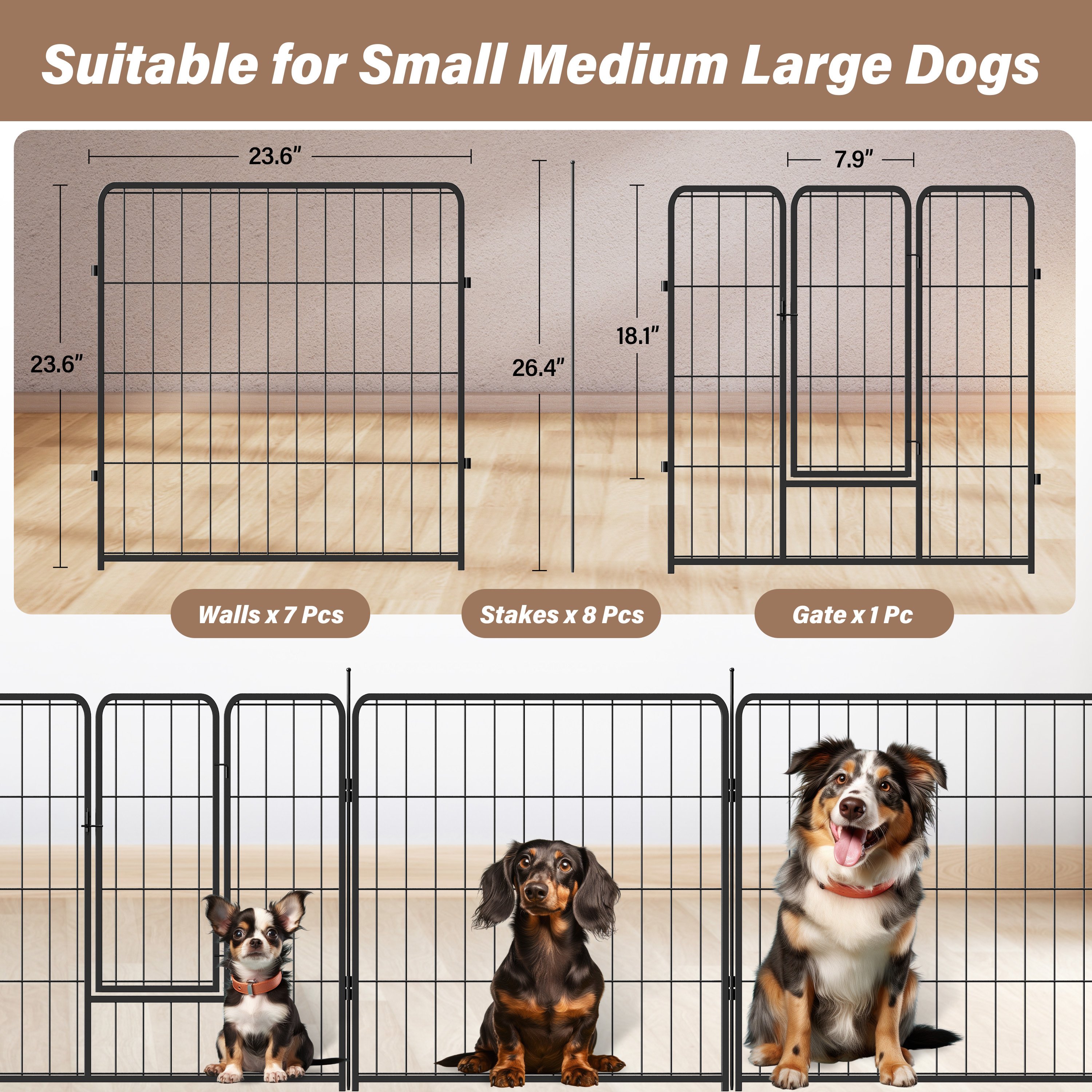 Dog Playpen Indoor Outdoor, 24" Height 8 Panels Fence with Anti-Rust Coating, Metal Heavy Portable Foldable Dog Pen for Large