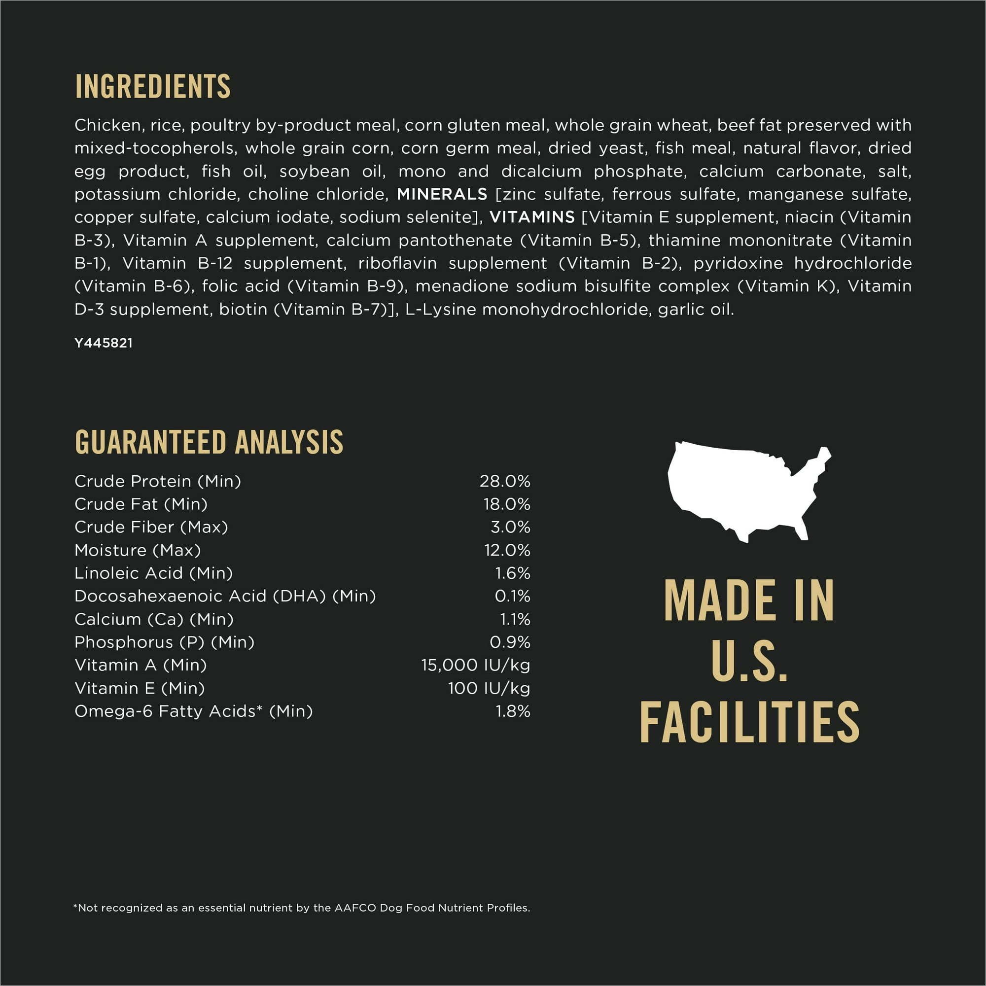 Purina Pro Plan Chicken and Rice Dry Dog Food for Puppies, Make your dog's nutritional needs a priority with Purina Pro Plan Brand Dog Food Puppy Chicken and Rice Formula dry puppy food. High-quality protein sources, including chicken as the first ingredient, help your puppy develop healthy muscles so he can keep up with his busy agenda. DHA from omega-rich fish oil in this puppy formula nourishes his brain and vision development, and calcium, phosphorus and other minerals build strong teeth and bones. This super-premium dog food has no artificial colors or flavors to keep your puppy running to his bowl.